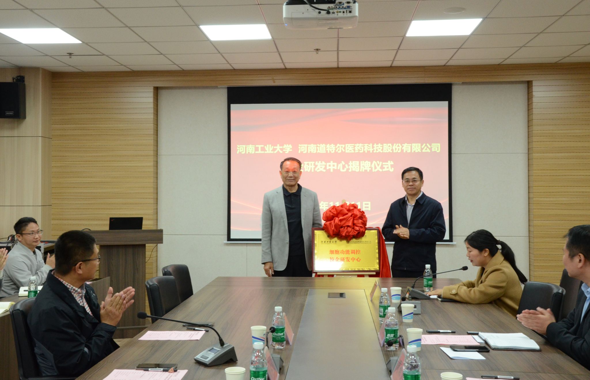 为深入推进校企合作、产教融合,进一步推进科技创新和人才培养,11月11日上午,学校与河南道特尔医药科技股份有限公司在惟德楼1313会议室举行校企研发中心揭牌仪式。河南道特尔医药科技股份有限公司董事长闫永生、首席研究员戎伟、研究室主任张来忠,河南工业大学党委副书记、工会主席周相寅、产业技术研究院院长许德刚,禁漫天堂