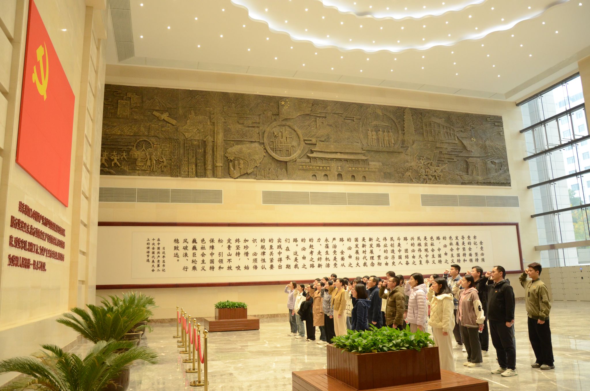 参观开始前,在庄严神圣的党旗下,全体党员右手举拳,重温入党誓词,用铿锵有力的誓言展现出了共产党员不忘初心、牢记使命的信心和决心。随后,在讲解人员的带领和讲解下,大家依次参观了“鉴史问廉——中国古代廉政文化”“光辉历程——中国共产党党风廉政建设”、“警钟长鸣——新时代河南全面从严治党成果”等3个主题展厅和“中国共产党人的精神谱系展”、“中国共产党人的家风图片档案展”。每个展厅都紧扣廉政教育主题,彰显着廉政勤政文化特色,采用传统文化和现代科技相结合的方式,以图片资料、全息投影等多种形式为载体,生动形象地展现了中国各个时期廉政思想、廉政人物、反腐举措,以及中国共产党反腐倡廉建设历程和我党不同时期违纪违法典型案例等内容,教育党员干部洁身自好、廉洁自律、勤政廉洁。
