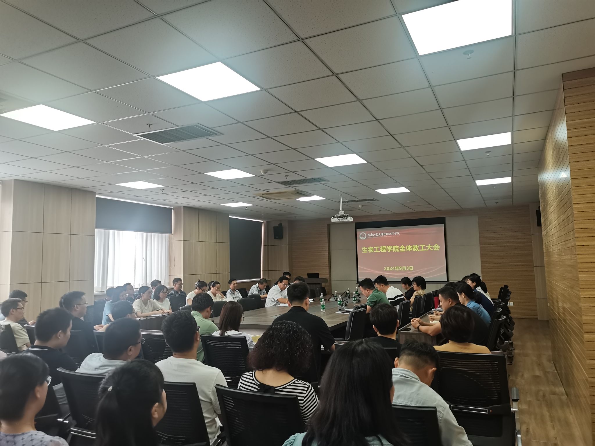 在惟德楼1313会议室召开全院教职工大会,安排部署新学期各项工作。学院领导班子成员及全体教职工参加了会议。会议由院党委书记卫红伟主持。