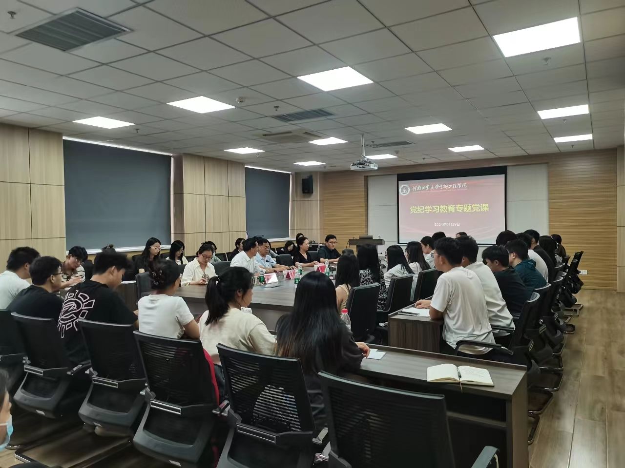 周相寅以“学党纪,守规矩,强党性,全面加强学生党支部纪律建设和作风建设”为题,阐述了党的纪律建设和作风建设的重大意义和基本要求,强调了高校学生党支部抓纪律建设和作风建设的必要性;解读了高校学生党支部纪律、作风建设中面临的风险挑战,并通过部分高校学生党支部相关的典型案例形成警示镜鉴;针对学生党支部加强纪律作风建设规划了方法路径,指导党支部建设在“一融双高”方面积极进行创新探索。最后,周相寅希望全体党员要紧密结合自身思想工作实际深入贯彻落实党中央重大决策部署,进一步强化纪律意识、加强自我约束、提高免疫能力,增强学习实效。