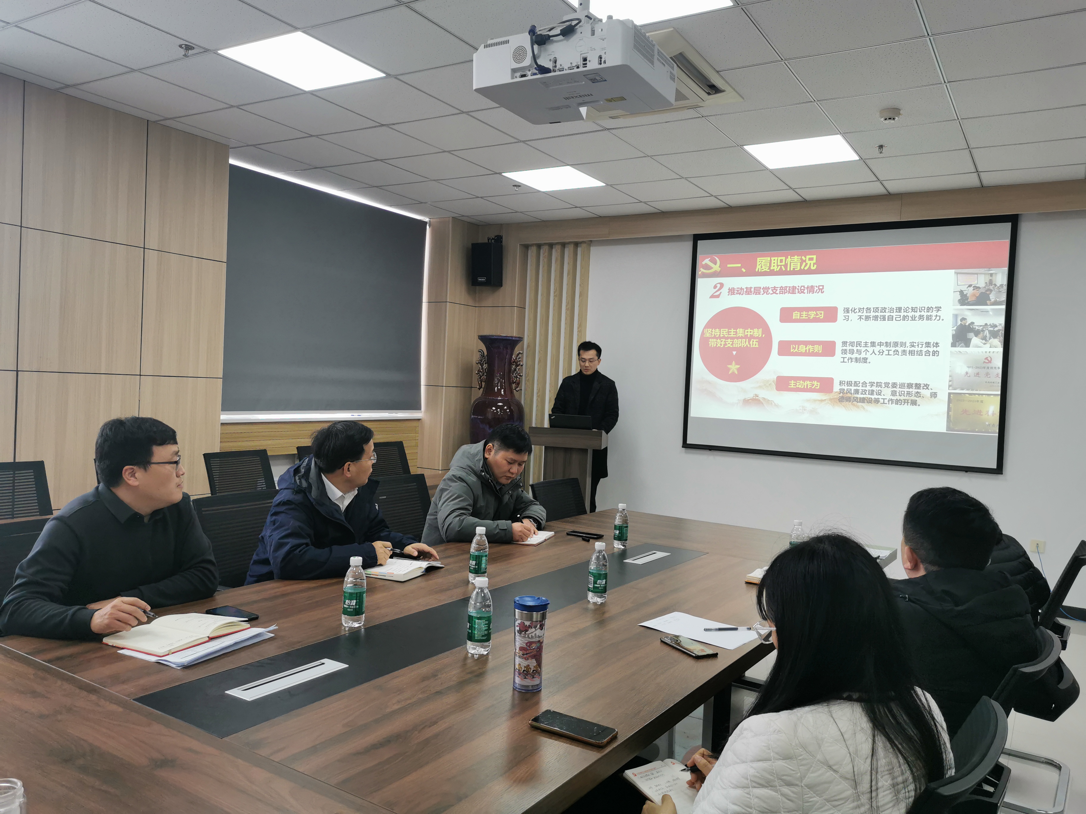 在学院1318会议室召开2023年度党支部书记抓党建述职评议会。学院党委书记卫红伟、院长胡元森及各党支部书记、委员、相关系室负责人参加了会议。会议由学院党委副书记余汉华主持。