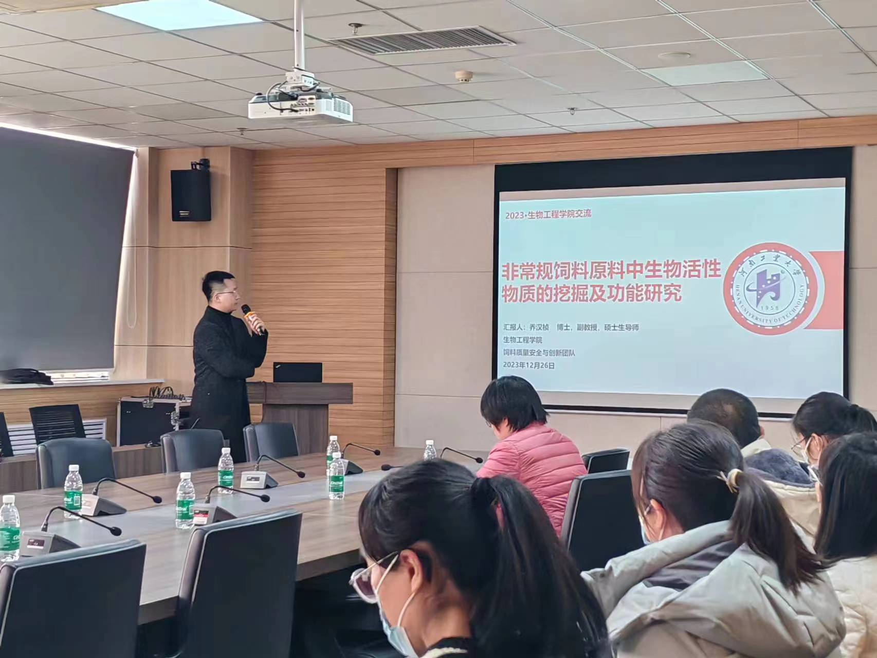 乔汉桢副教授首先对学院长期以来对学科建设和科研团队工作的支持和引领表示感谢,并结合自己入职以来的科研历程,做了题为《非常规饲料原料中生物活性物质的挖掘及功能研究》的学术报告。重点介绍了我国非常规饲料原料资源的现状、原料营养价值、功能性成分的挖掘以及在畜牧生产上的应用。指出我国粮食安全主要问题在于“饲料粮安全”,非常规饲料在保障我国饲料粮安全上具有重要意义。针对非常规原料饲料化中存在饲料数据库不完善和高值化利用加工技术欠缺等现状,系统讲述了自己所在的“饲料质量与安全创新团队”近年来采用挤压、汽爆、酶解、发酵及其协同工艺,开展针对甘薯渣、地黄渣、油莎豆粕、花椒籽粕、亚麻籽粕等非常规饲料原料的精准加工和技术创新,并进一步在体内验证其改善畜禽生产性能的功效。