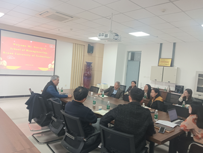 进行学术交流,胡元森院长对Steven先生的到来表示热烈欢迎,并做了细致的接待安排。会议由中国粮油学会饲料分会会长、河南工业大学王卫国教授主持,动物科学系系主任乔汉桢副教授及部分教师共同参与了交流。