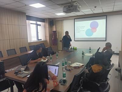 从饲料加工过程中如何有效控制水分损失、减少淀粉及蛋白质间反应的有效手段,以及如何利用显微成像技术精确判断饲料制粒后原料的淀粉和蛋白质发生美拉德反应的程度、淀粉糊化程度以及相应的结构变化等,以此来评价饲料的生物学价值。报告内容为大家带来了新的科研思路,双方围绕饲料加工过程中的显微成像技术开展了深入的技术交流,为理解饲料加工过程中的机制提供了新视角。通过交流,彼此双方都有进一步的了解,并对未来开展国际合作达成初步意向。(撰稿:唐天悦,审校:乔汉桢,审核:崔柳青)