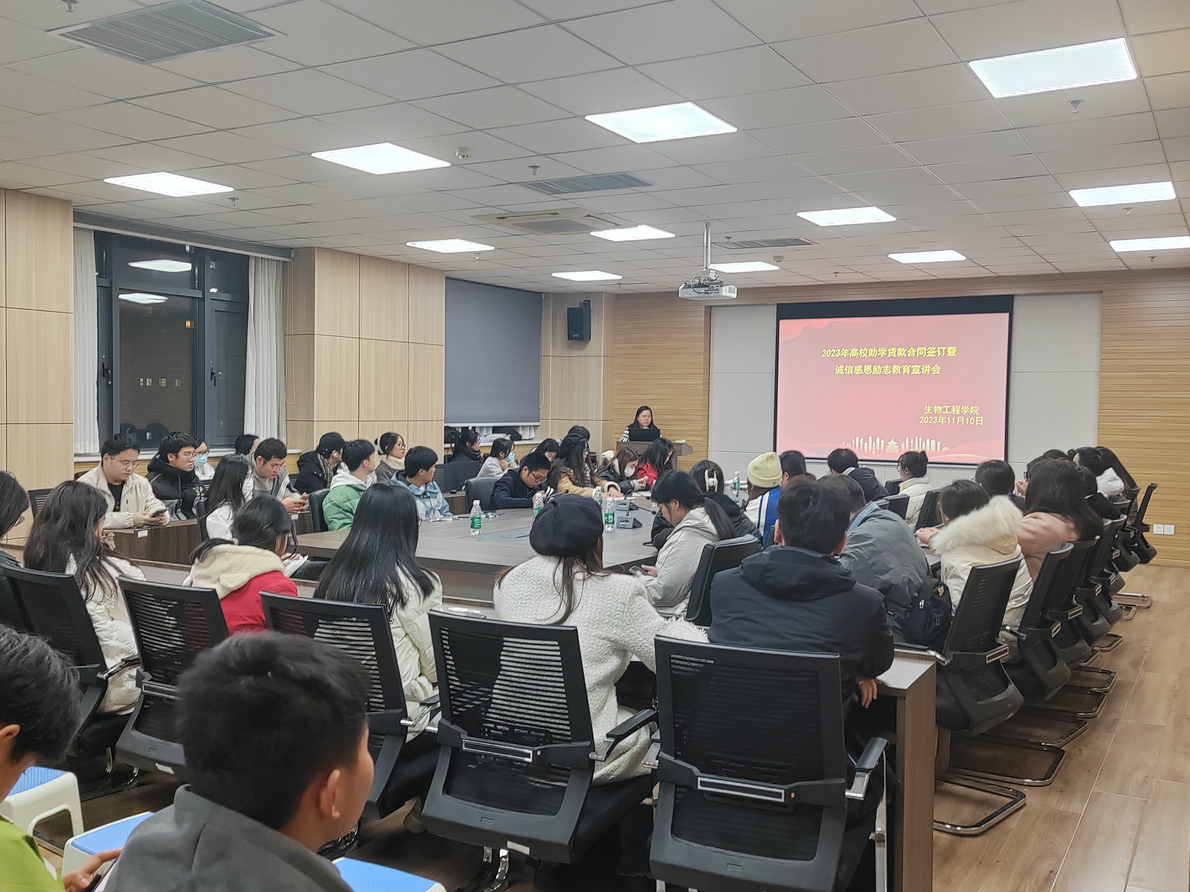 召开2023年高校贷款合同签订暨诚信感恩励志教育宣讲会,学院资助负责人苏雪玲老师、资助助理及申请高校贷款的学生参加了本次会议。