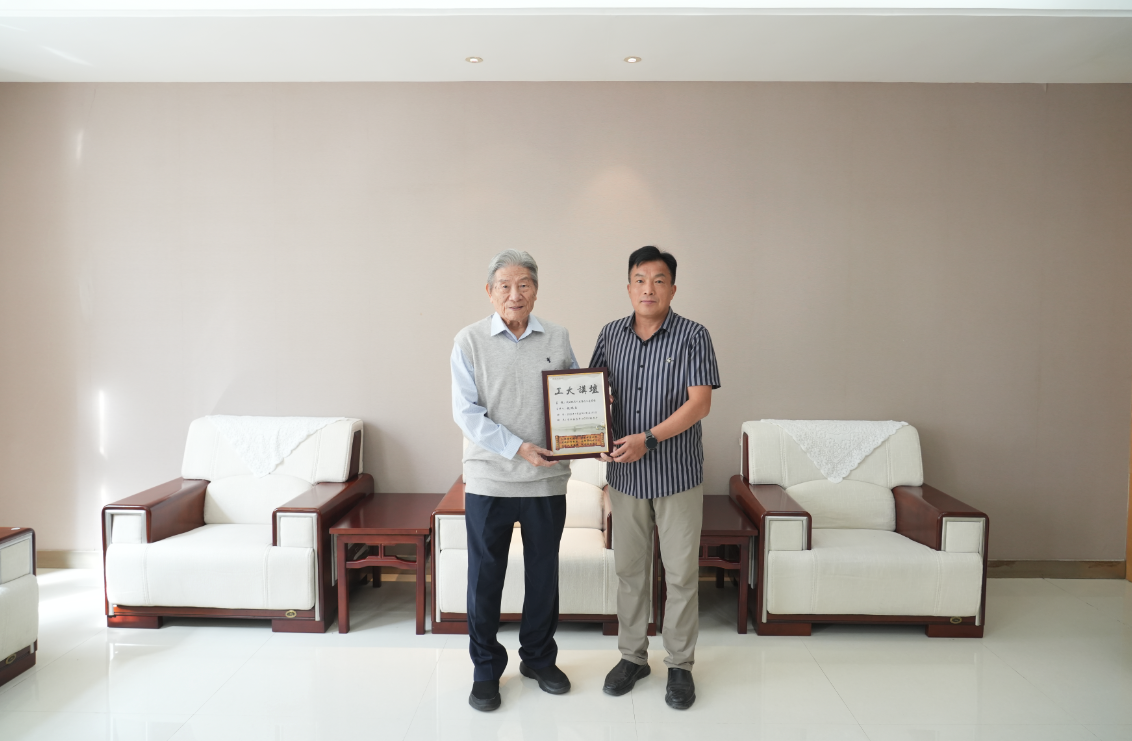 副校长牛进平向赵院士赠送工大讲坛海报