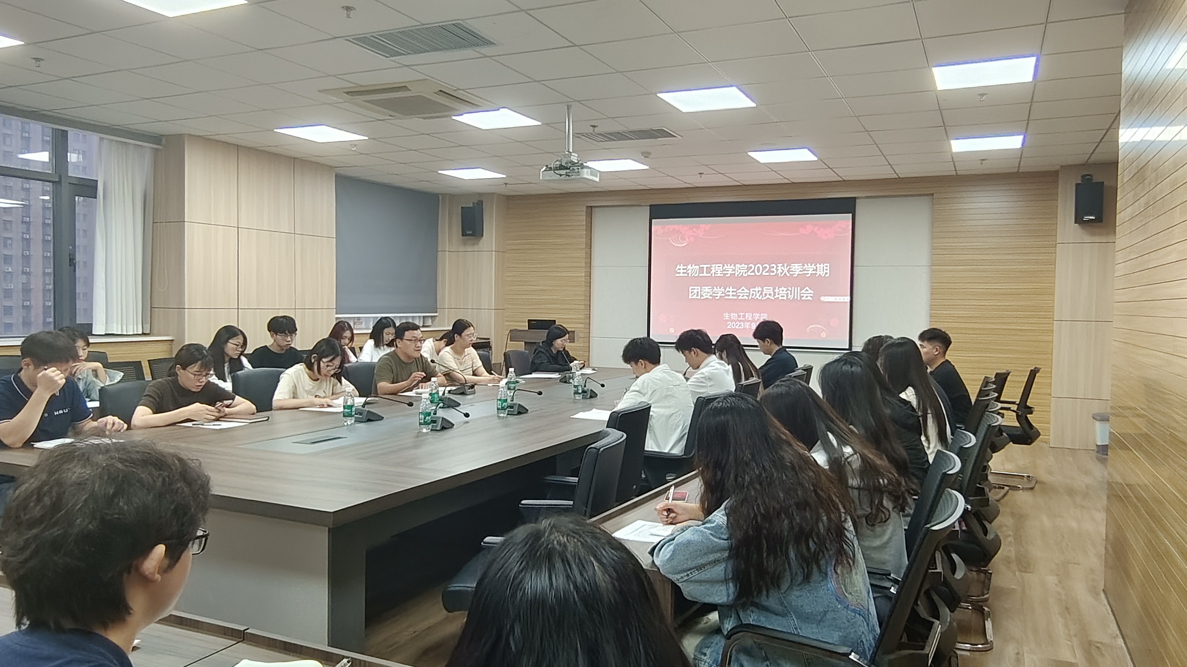 在1313会议室召开2023秋季学期团委学生会成员培训会。学院党委副书记余汉华、学工办主任岳媛媛、团委副书记杨雨薇、全体辅导员以及学生会团委全体工作人员参加会议。会议由学生会主席团成员刘宸昊主持。