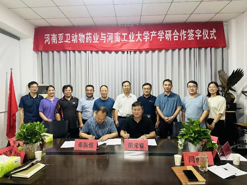 秦振恒首先对河南工业大学各位领导及教师的到来表示欢迎,感谢学院对公司发展的大力支持,并介绍了河南亚卫动物药业有限公司的发展历程、经营现状及未来发展目标,希望双方在项目申报、产品研发及技术服务、人才培养等方面广泛开展深入合作。