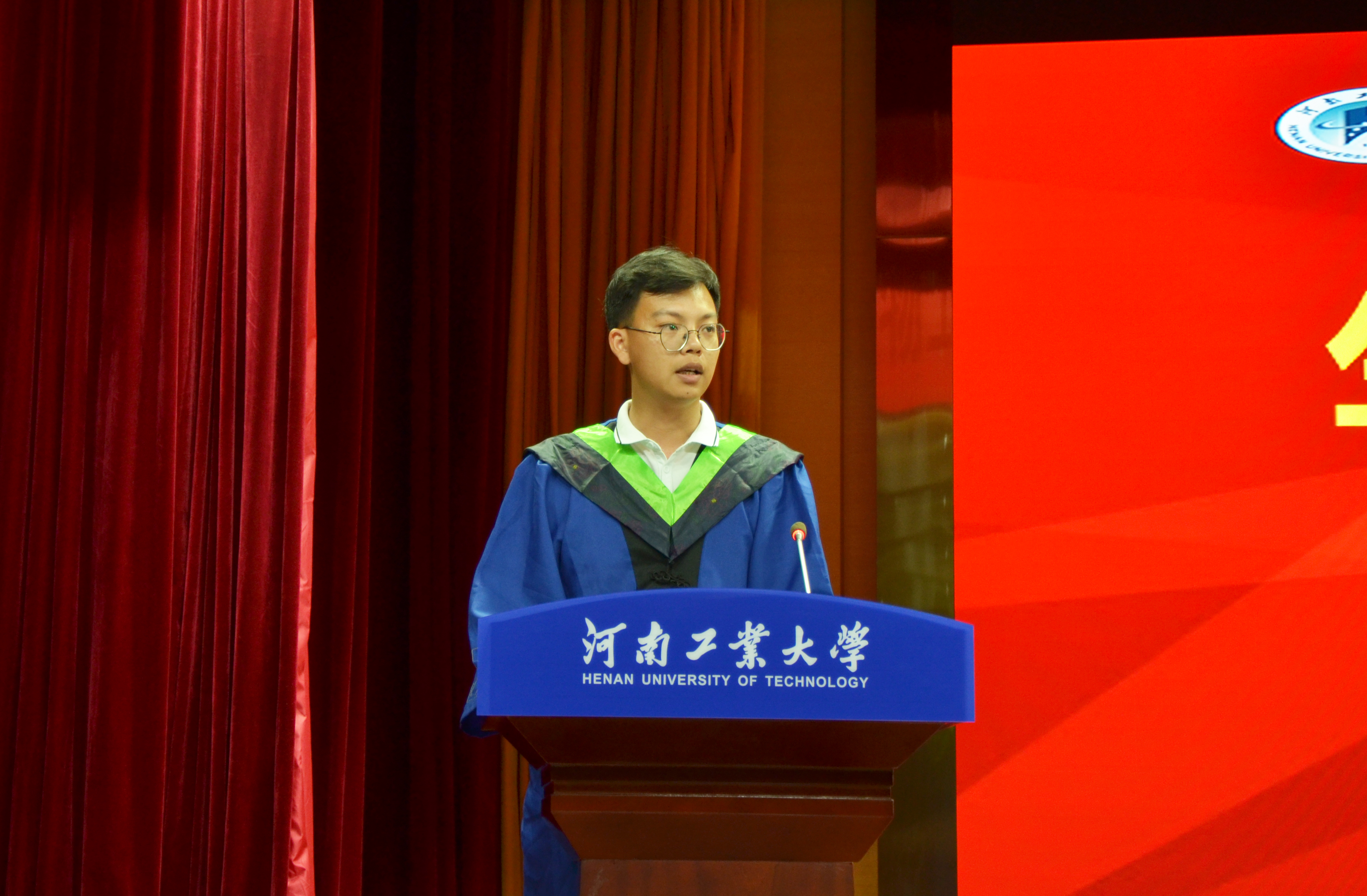 研究生毕业生代表杨智翔、本科毕业生代表孙晶晶分别发言,分享了自己在校期间的成长和收获,表达了对母校深深的眷恋之情和老师们细心栽培的感激之情,表示将不辜负母校的培养、不辜负老师的教诲,努力成为社会有用人才。在校生代表赵桐悉向毕业的学长学姐表达祝贺和祝愿,希望学长学姐带着母校的厚望和师长的嘱托,在新的征程书写人生华章。青年骨干教师、毕业班班主任代表赵英源老师发言,对圆满完成学业的同学表示祝贺,希望同学们树立终身学习的理念,修身养德,不断迈上新台阶,拥有更加广阔的人生舞台。