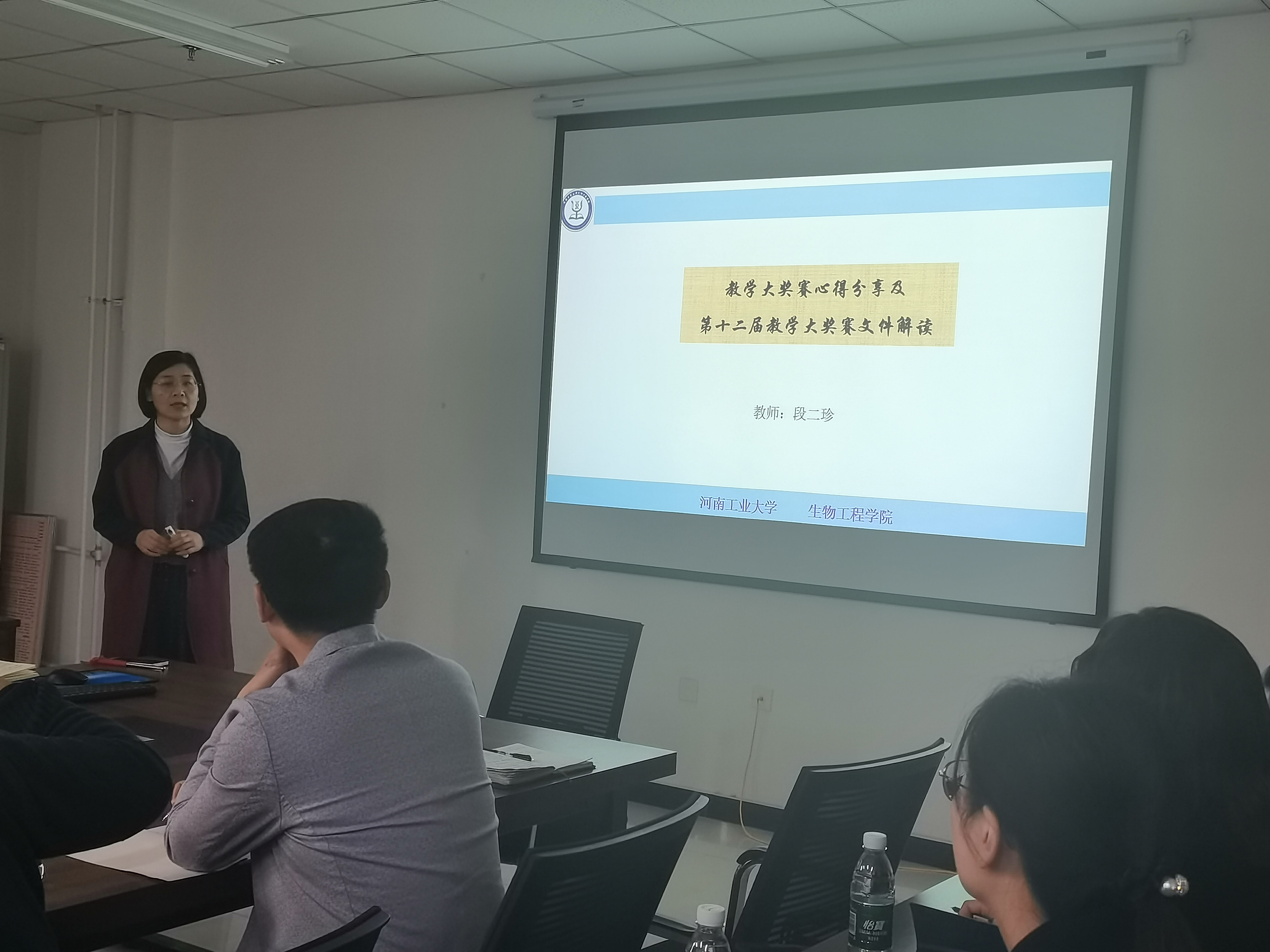 会上,段二珍老师结合自身实例与经验,围绕教学目标设计、课程建设、师生互动、课程思政、研究性教学等内容,详细向参会老师介绍了新理念下参加教学大奖赛的思路与方法,为各位老师提供了课程样板与教学改革方向。随后,黄亮老师强调教学大奖赛中的注意事项,并指出了教学改革和建设需要持之以恒,坚持投入思考。之后参会教师进行了热烈的讨论与交流。