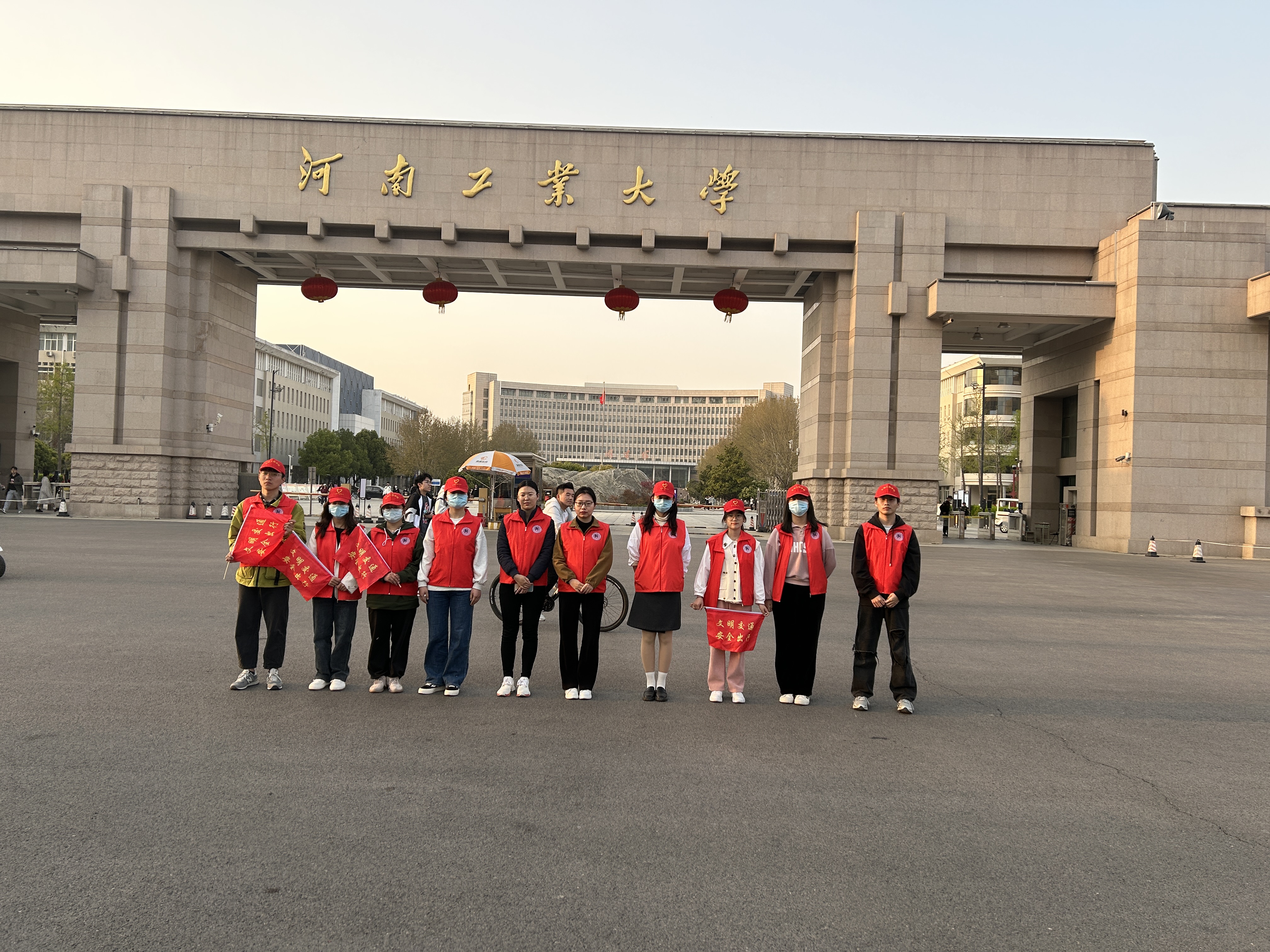 师生于3月27日下午14:00-18:00在河南工业大学莲花街校区南门口进行文明交通志愿服务活动,宣传安全出行常识,引导行人和非机动车驾驶安全文明出行。