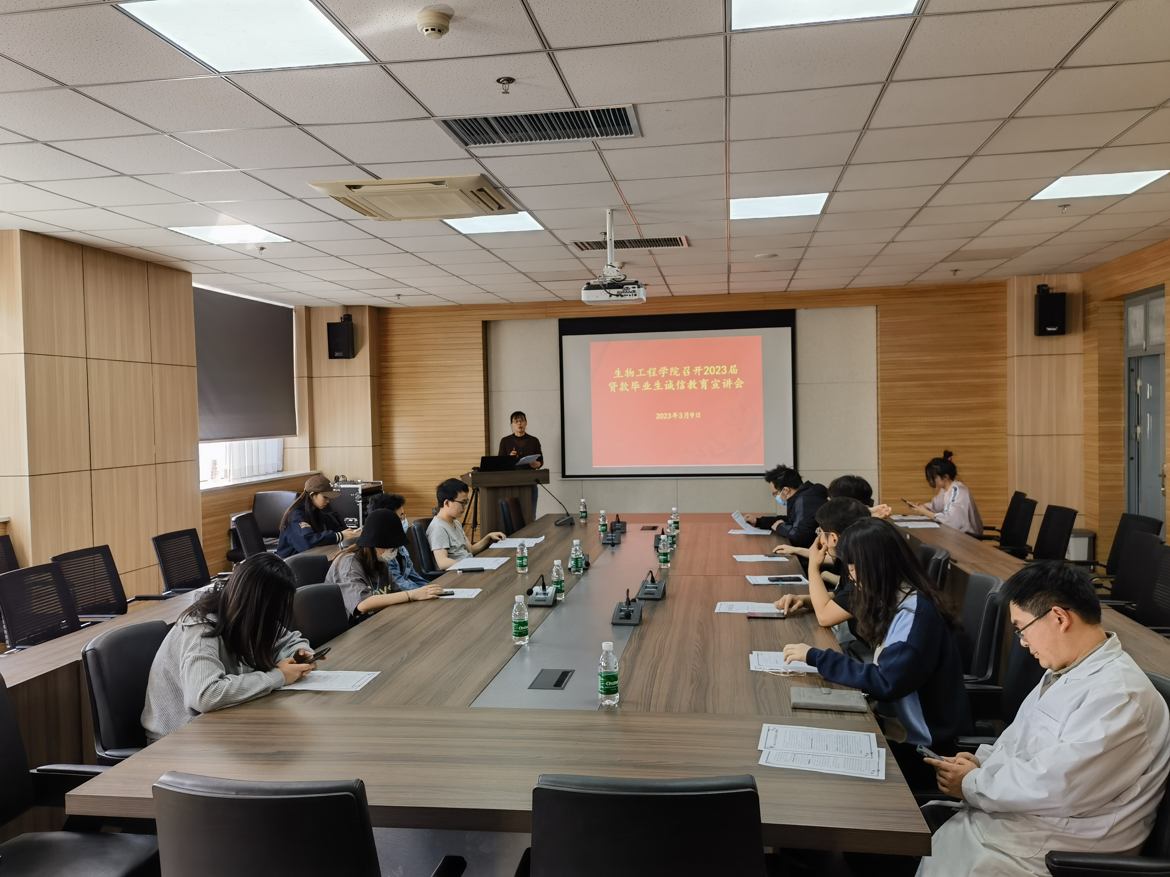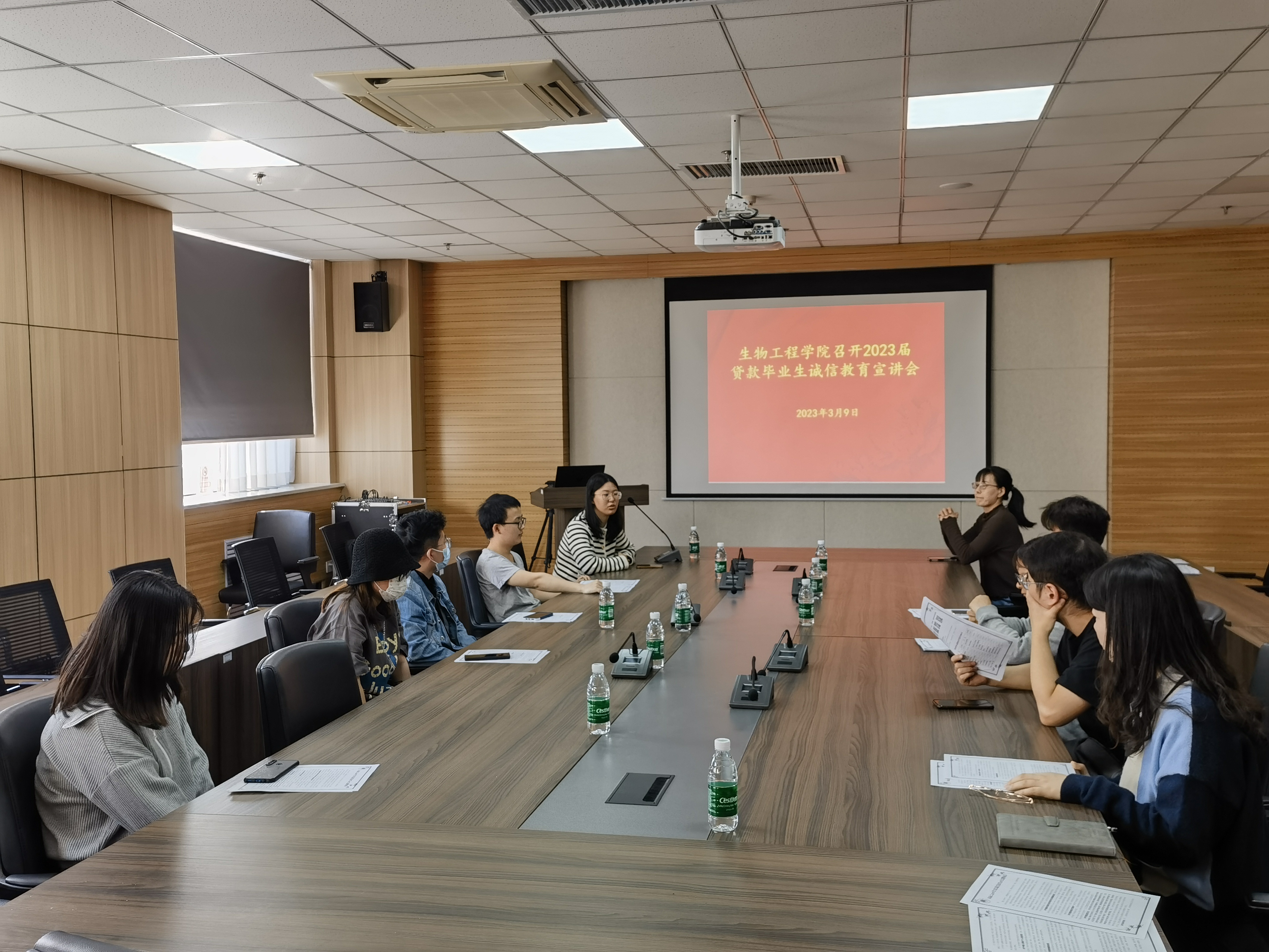 在1313会议室召开2023届贷款毕业生诚信教育宣讲会。学院团委副书记、毕业生辅导员杨雨薇、资助助理及2023届贷款毕业生参加了此次会议。会议由学院资助工作负责老师李亚楠主持。