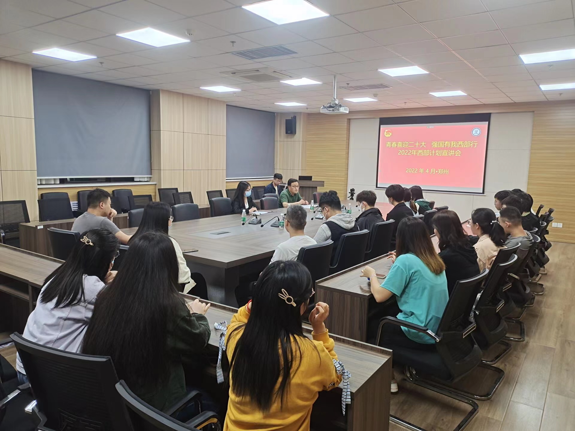 在1313会议室召开西部计划宣讲会。学院党委副书记余汉华、辅导员张国静,学院2020届西部计划志愿者王力、2021届杨雨欣以及毕业生代表参会。会议以线上、线下相结合的方式召开。