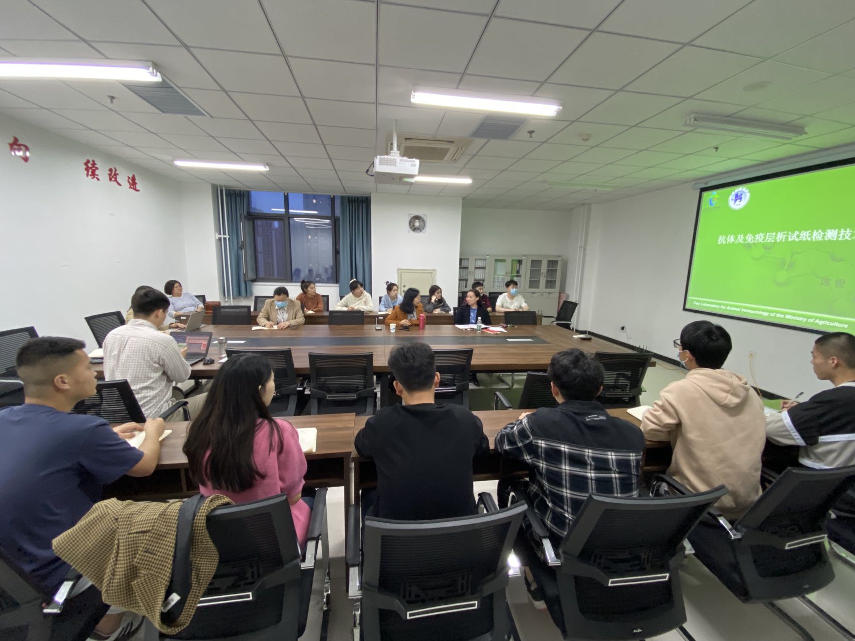 为积极响应学校“一流学科”创建,不断加强团队合作与质量内涵建设,2022年4月12日晚,饲料质量与安全创新团队邀请粮油食品学院席俊教授在基础实训楼1314会议室做了题为“抗体及免疫层析试纸检测技术”的专题讲座。饲料质量与安全团队教师、研究生和动物科学系部分本科生参与交流会。会议由团队负责人王金荣教授主持。