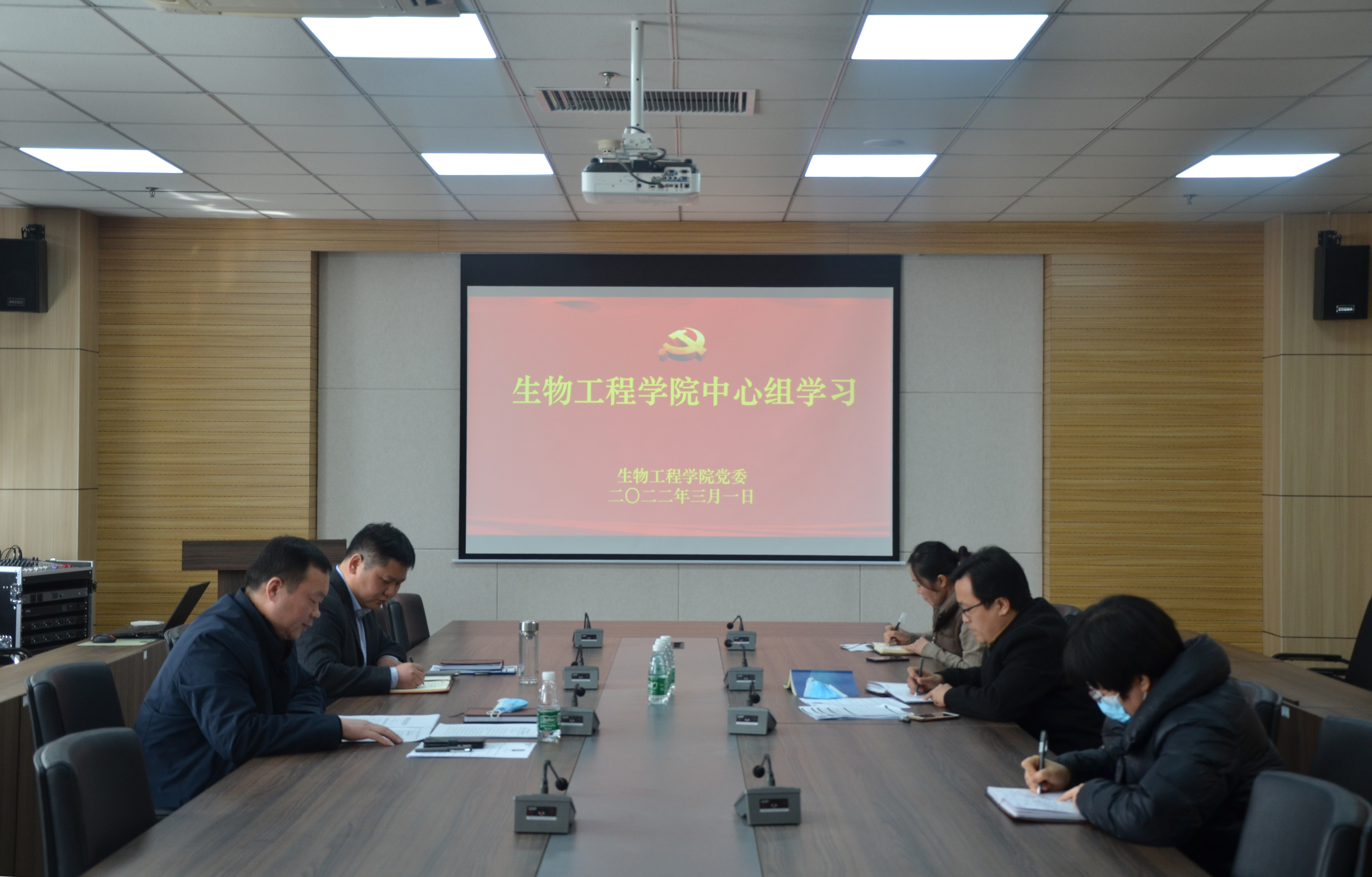 在1313会议室召开党委中心组学习会,集中学习习近平总书记重要讲话和学校“能力作风建设年”活动有关文件精神。学院党委中心组全体成员参加了集体学习。会议由院党委书记李继周主持。