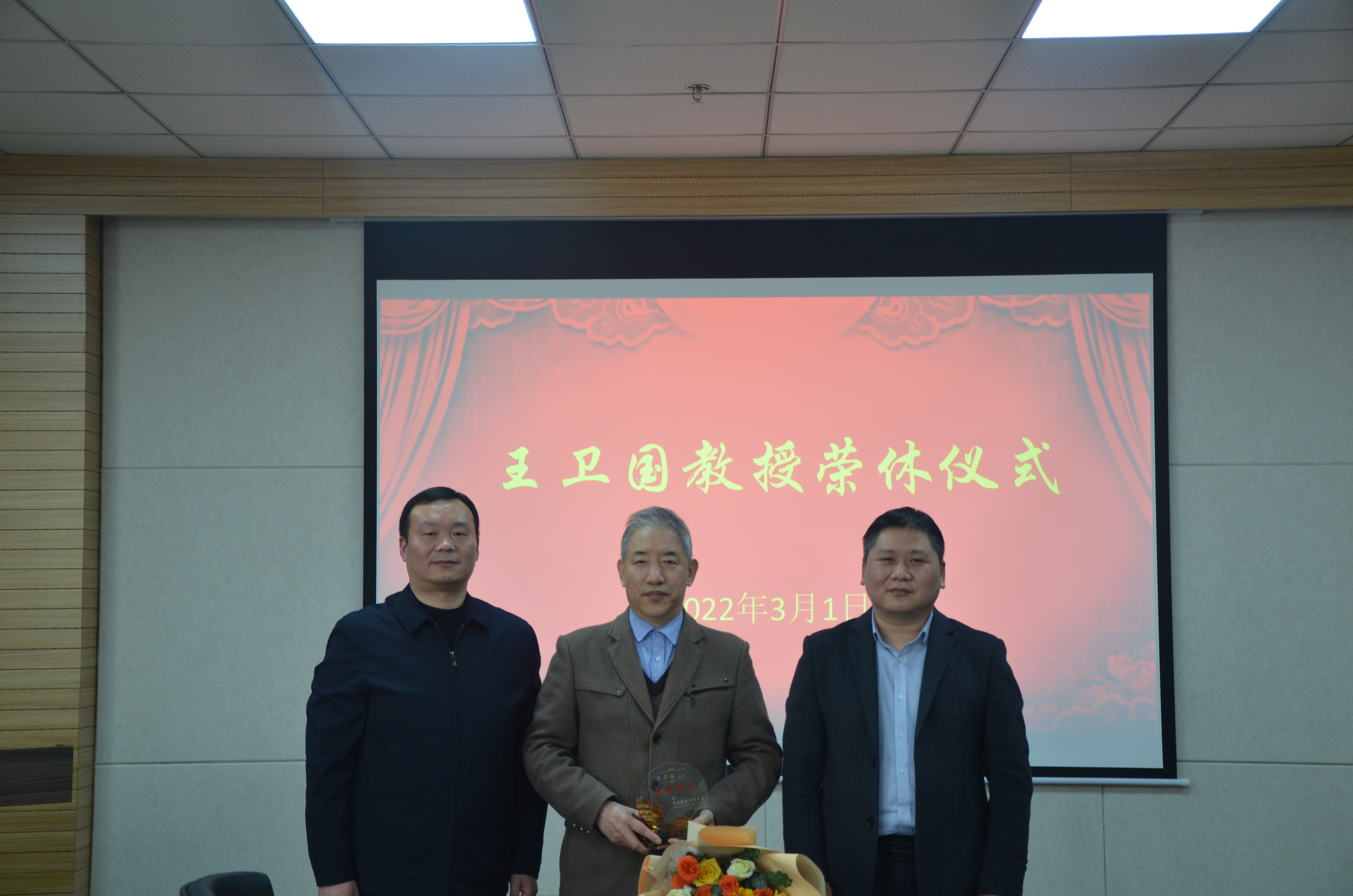 在基础实验实训中心1313会议室举行动物科学系王卫国教授的荣休仪式。学院领导班子成员、全体教职工齐聚一堂,共同见证这难忘时刻。仪式由院党委副书记、工会主席余汉华主持。
