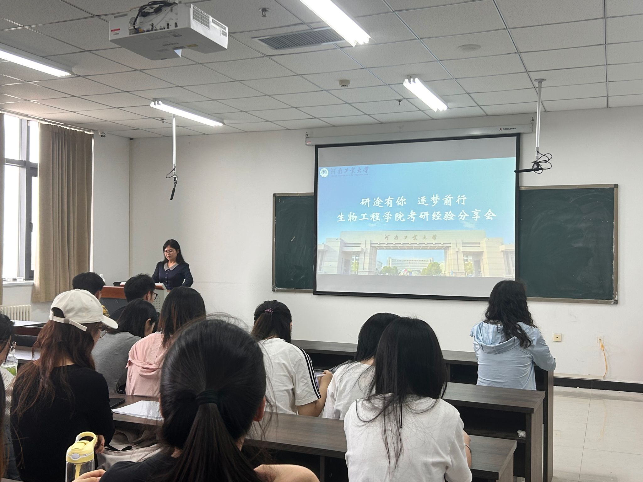 会上,生物技术系主任伊艳杰介绍了当前的考研形势,深入讲解了历年生物技术专业学生考研录取比例、录取分数和录取院校分布,建议同学们坚定信心决心,根据自身实际情况制定清晰目标,高效科学备考,慰勉同学们要劳逸结合,并祝愿大家能够考研成功。