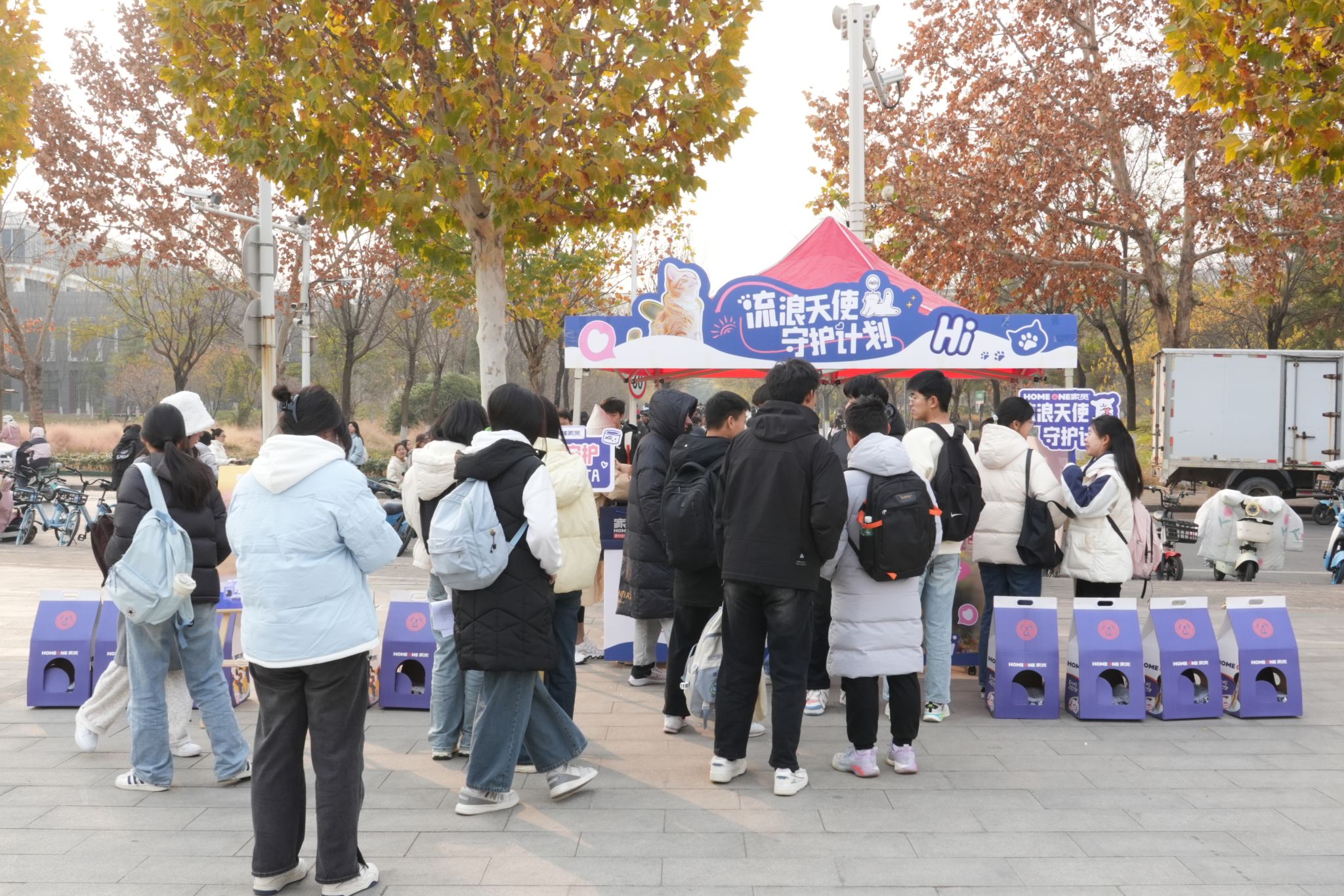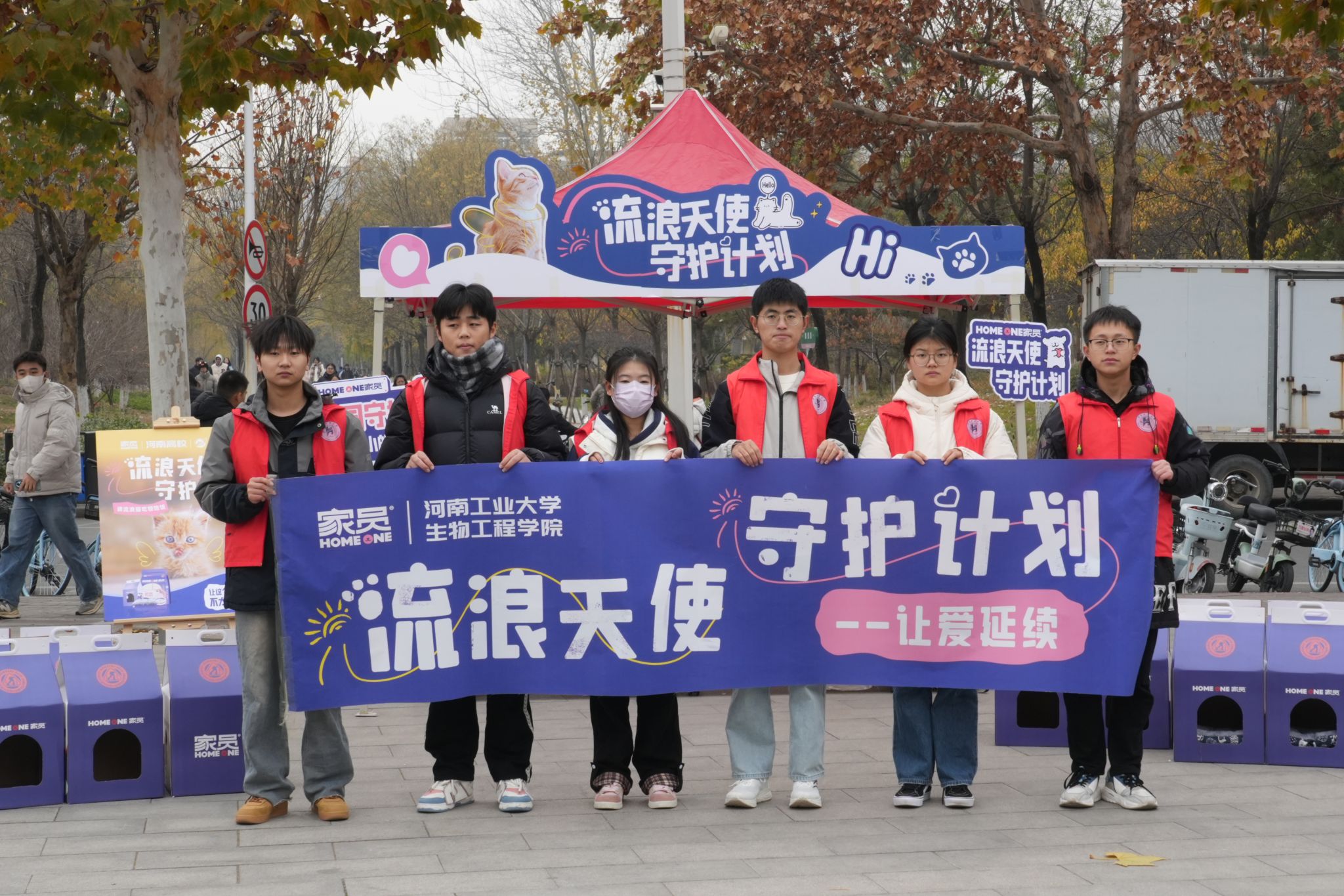 与河南家员宠物食品有限公司联合在钟楼广场组织开展“流浪天使守护计划”的志愿服务活动。