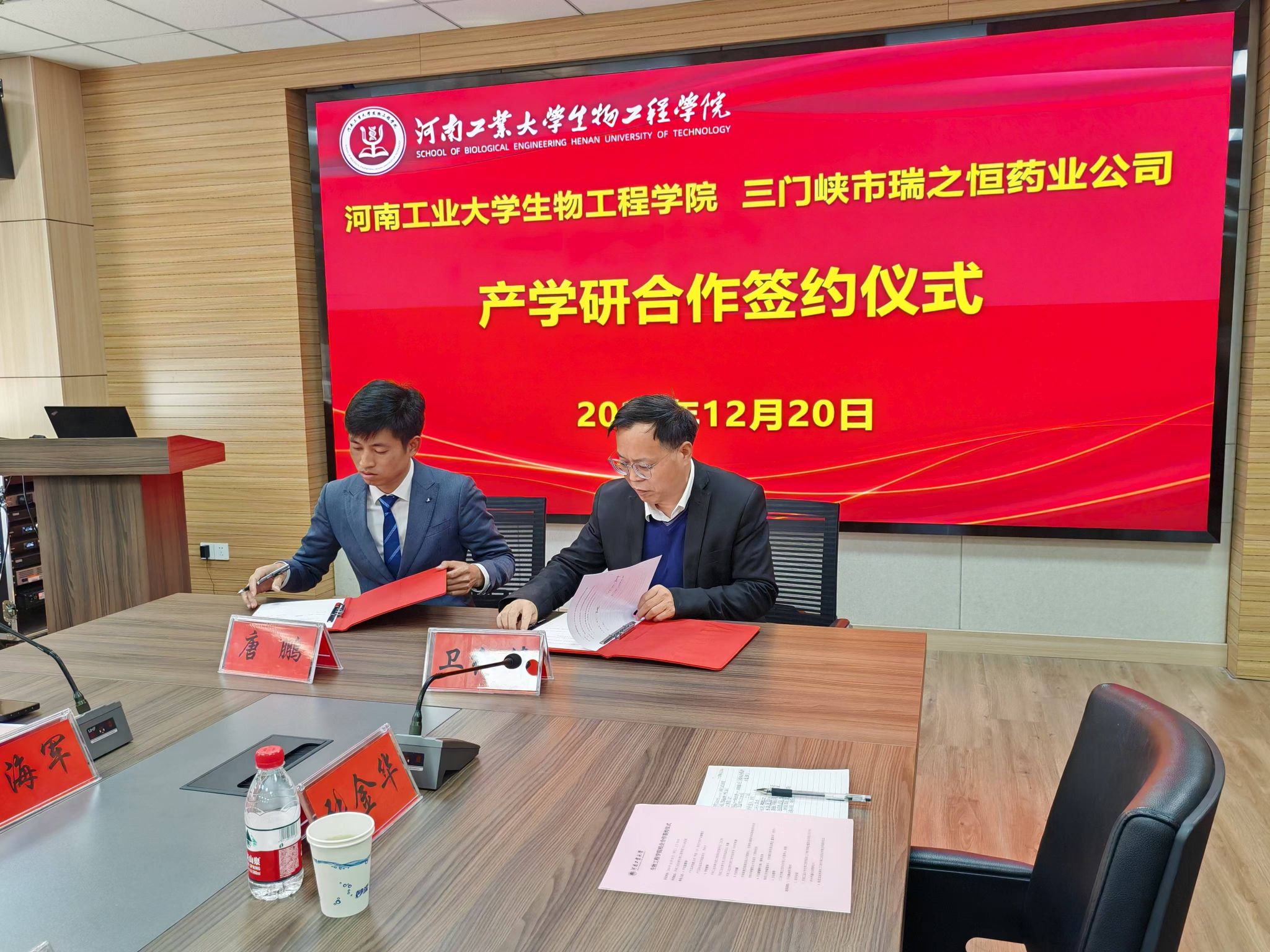 和三门峡市瑞之恒药业有限公司产学研合作签约和产学研创新实践基地授牌仪式、海涯文化传媒和三门峡市瑞之恒药业有限公司合作签约仪式。