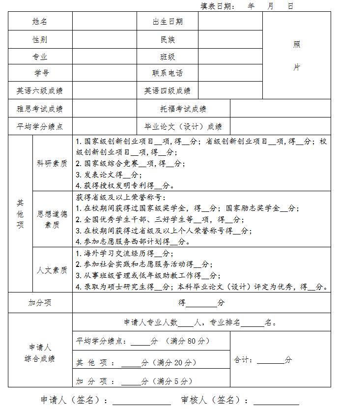 4.录取为硕士研究生得5分;本科毕业论文(设计)评定为优秀,得5分。