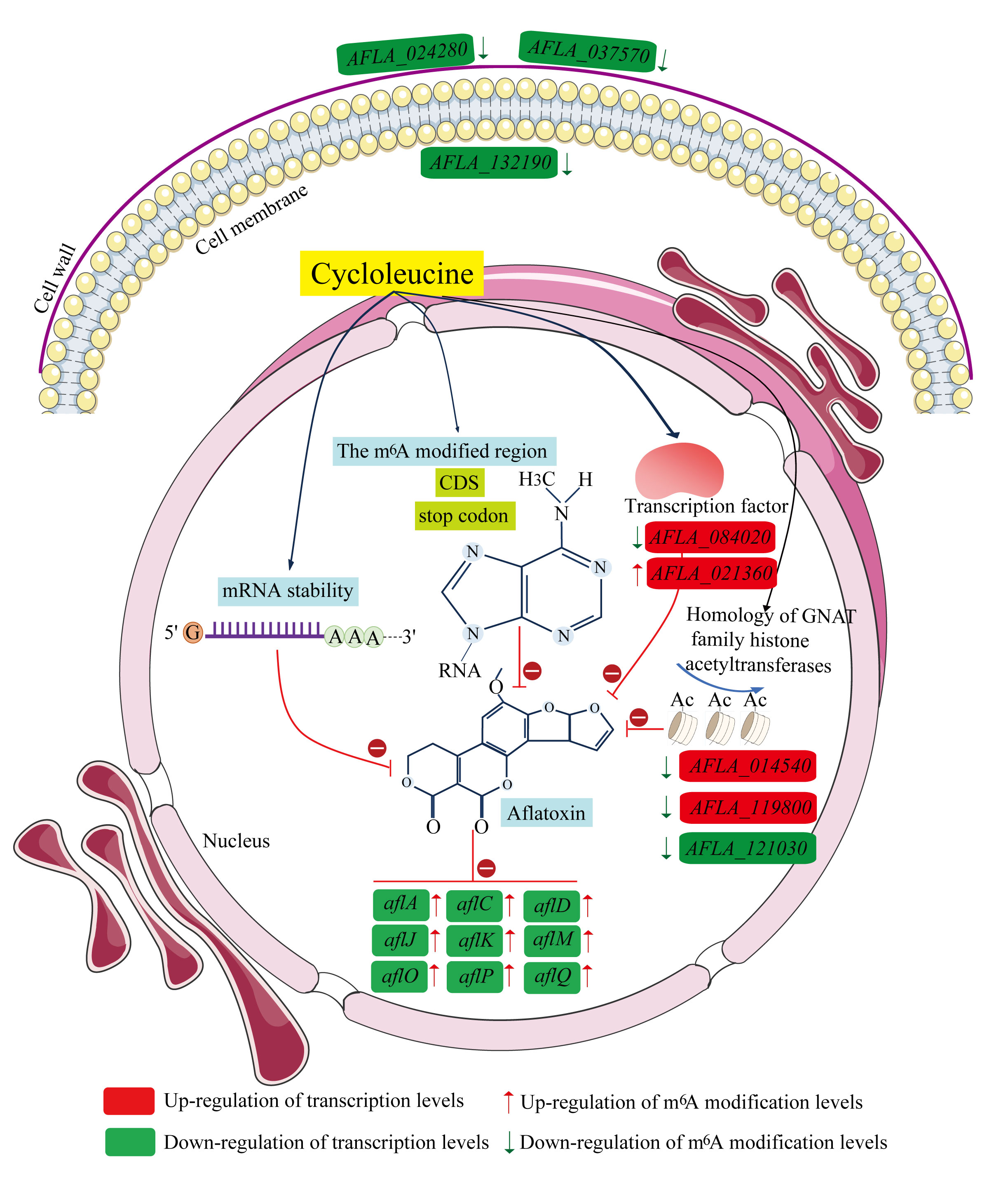 图1 环亮氨酸通过m6A甲基化修饰调控黄曲霉毒素B1生物合成的机理图