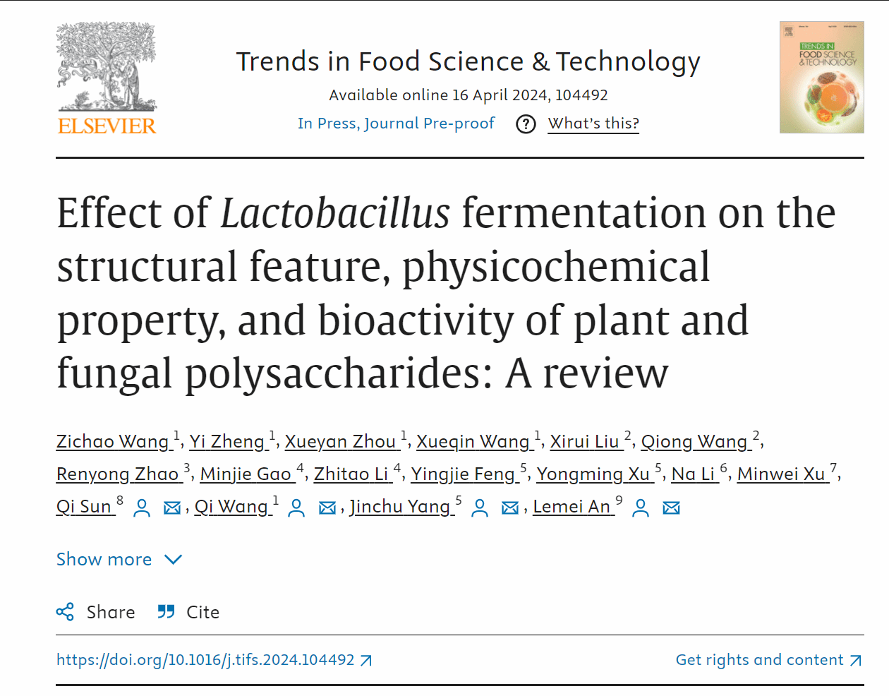 王子朝副教授课题组在食品领域国际顶级期刊Trends in Food Science & Technology(中科院一区,TOP期刊,IF = 15.3)上在线发表了题为:“Effect of Lactobacillus fermentation on the structural feature, physicochemical property, and bioactivity of plant and fungal polysaccharides: A review”的综述论文。该论文全面和系统的综述了近年来乳杆菌发酵对植物和真菌胞外多糖结构特征、理化特性、生物活性的影响。王子朝副教授是第一作者,禁漫天堂