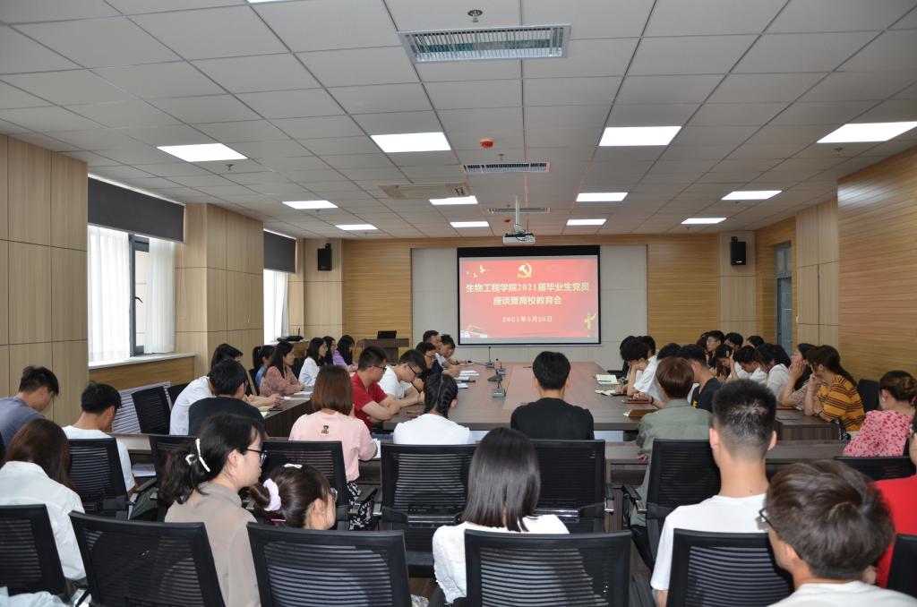 在1313会议室召开2021届毕业生党员座谈暨离校教育会。学院党委书记李继周、副书记余汉华、学工办主任岳媛媛、全体毕业生党员参加会议。会议由学院团委负责人丁凯强主持。