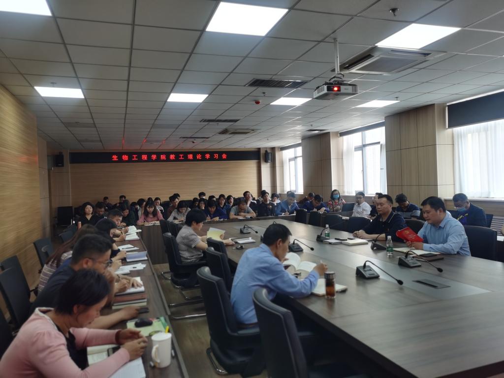 在1313会议室举行教职工理论学习会。学院班子成员、各科室负责人以及全体教职工参加了理论学习会。会议由党委书记李继周主持。