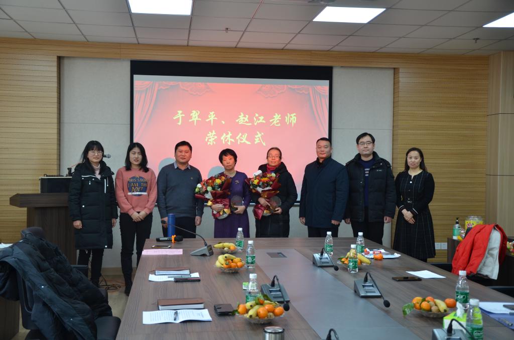 荣休仪式上,学院党委书记李继周、副院长胡元森代表学院向光荣退休的于翠平、赵江两位老师颁发荣休纪念证书,动物科学系主任王金荣、生物工程系主任杨硕晔代表学院赠送了纪念品,青年教师代表甘利平、王喜凤代表学院献上了鲜花,并拍照留念。
