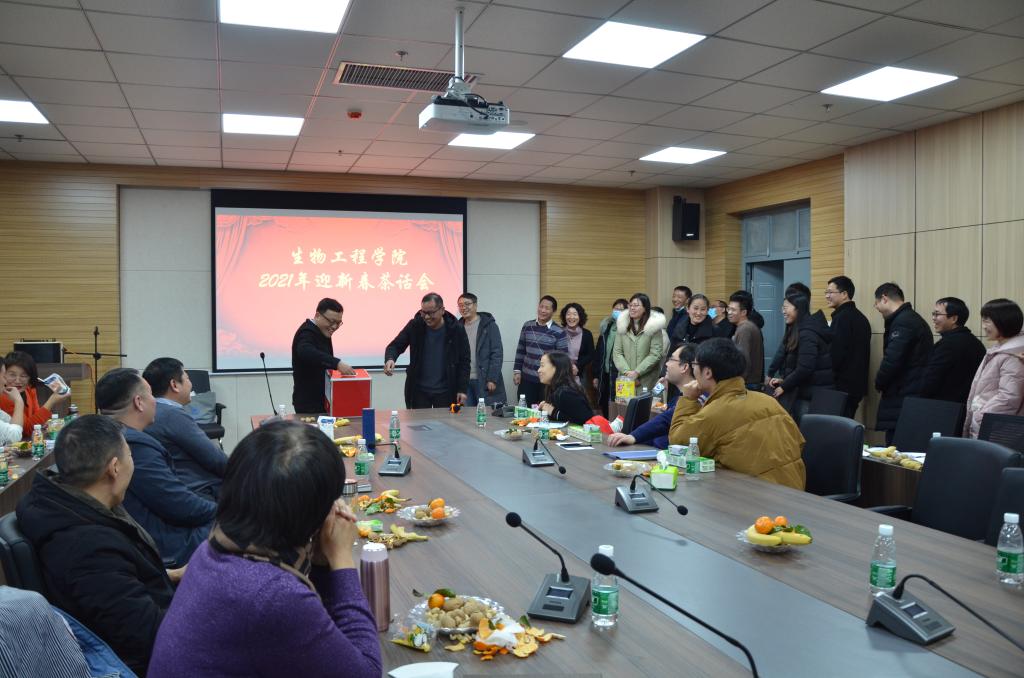 茶话会上,学院老师展现了他们多才多艺的一面,李继周书记献上的歌曲《卧龙吟》,曲调悠扬、旋律动人;黄亮、刘娜老师的小合唱、范沛老师的吉他弹唱、王乐老师带来的歌曲《时间的远方》优雅动听、情深意长;杨刚、乔汉桢、崔耀明、王朋带来的《新春rap》、张霞、沈云鹏的诗歌朗诵、王金荣等八位老师带来的手语表演、贾峰老师的脱口秀《梗》,气氛热烈、掌声不断。节目各具特色,歌声笑声齐飞,和穿插其中的抽奖环节和小游戏一起把茶话会一次次推上高潮。与会师生欢声笑语、掌声不断,会场暖意融融、气氛热烈,处处充满了欢乐喜庆祥和的气氛。