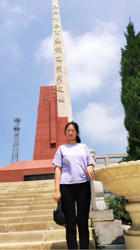 动物科学1904班王林晴出发前往河南省南阳市方城县七里岗红二十五军战斗遗址,进行“体验教育类”的暑期实践活动,学习红二十五军革命精神,实地感悟红二十五军革命精神。