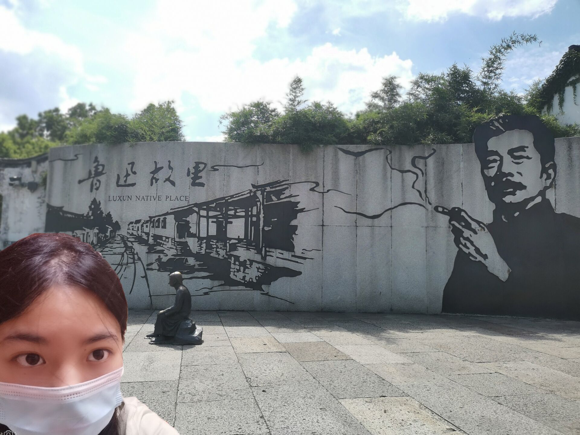7月22日,参观过程中跟随讲解员,鲁迅故里包括鲁迅祖屋、 三味书屋、鲁迅故居、鲁迅笔下风情园和鲁迅纪念馆共5个部分,我也与地标,标志性建筑进行合影。